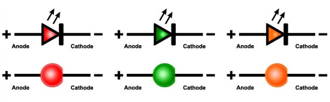 Since LED circuits only flow in one direction – from the anode to the cathode – LEDs will not work if this circuit is backward. Figuring out which is the anode and the cathode is fairly easy – 5mm LEDs’ anode is slightly longer than the cathode lead, Surface Mount LEDs are labeled for easy identification.